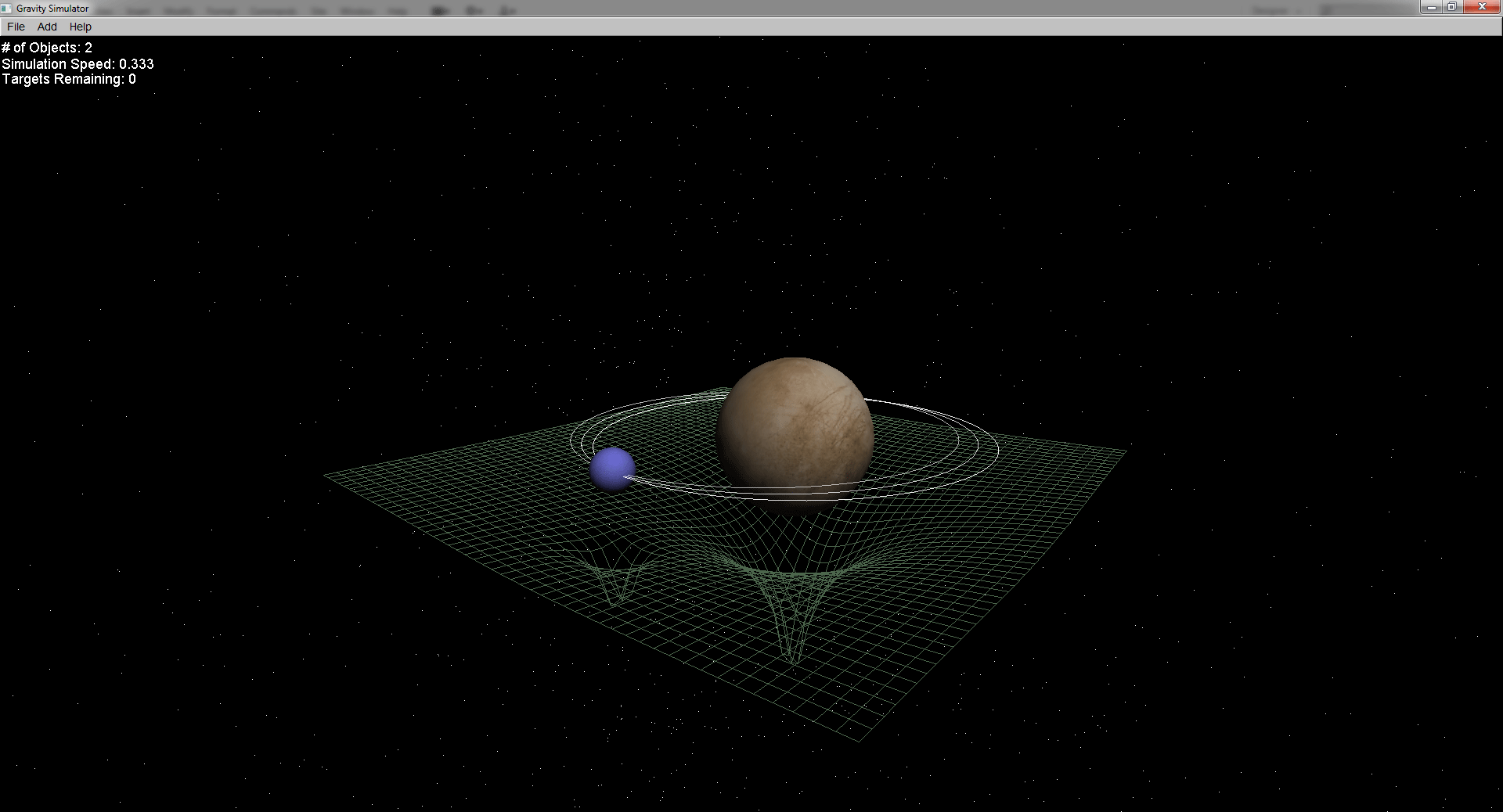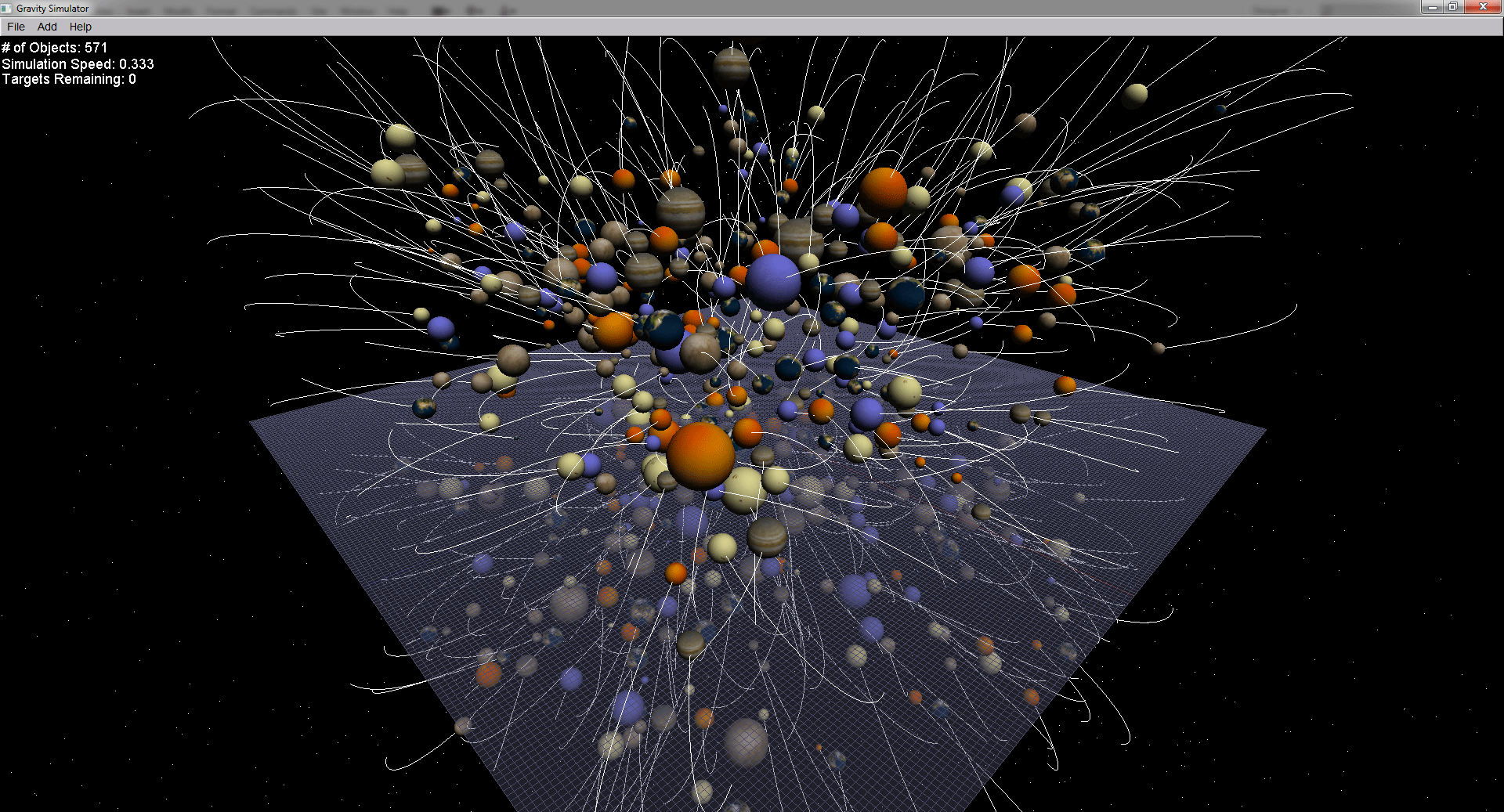The gravity-sim application is written in C++ using OpenGL and FLTK. The source is available on GitHub here.