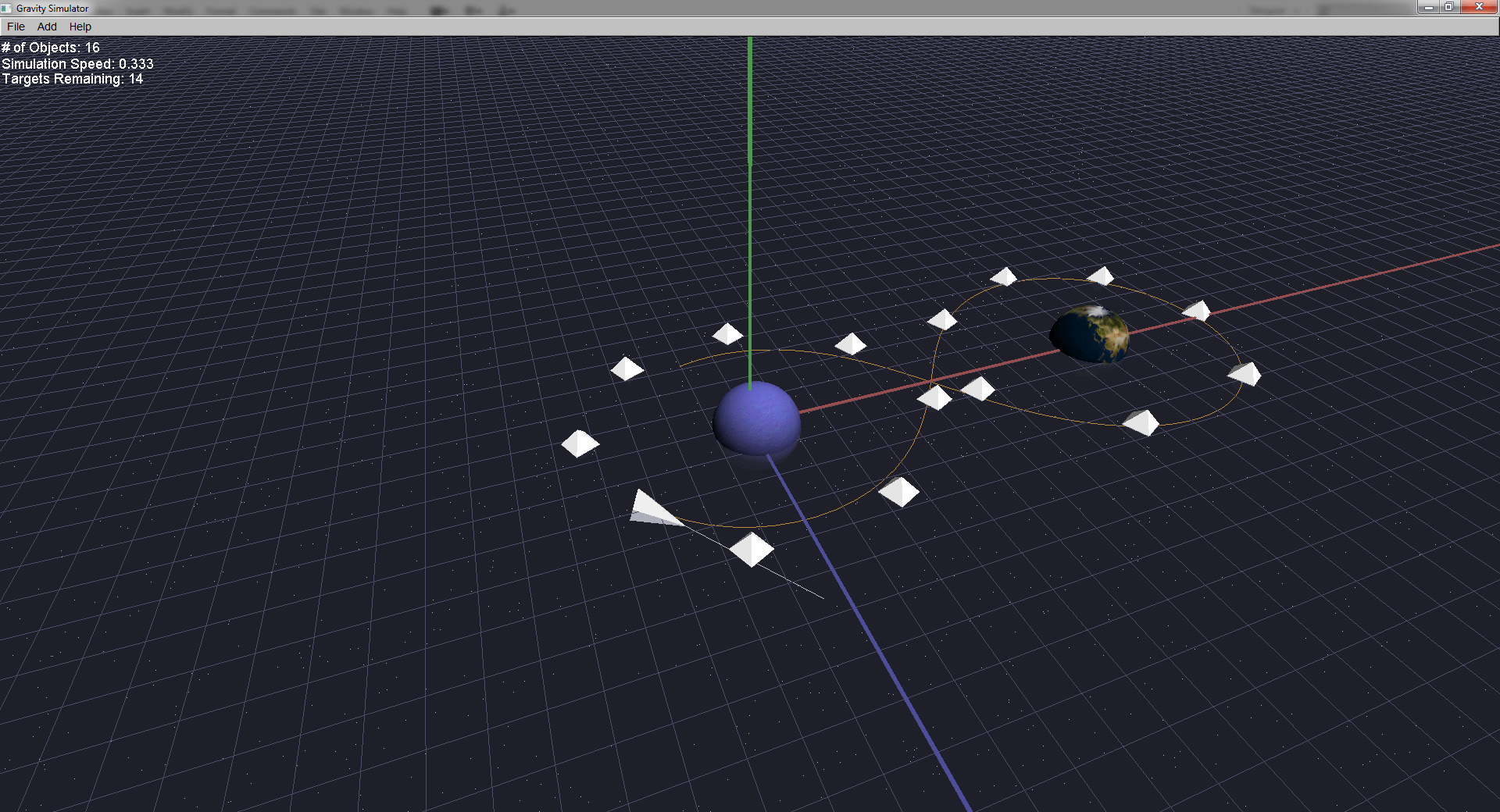 Each keypress or mouse movement generates an event, and the appropriate action is taken depending on the state of the program. This allows additional functionality such as drawing the force grid, and adding static members, actors, and targets.