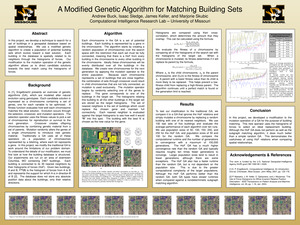 In this project, we develop a technique to search for a set of buildings in a geospatial database based on spatial relationships. We use a modified genetic algorithm to create a population of potential building sets which evolve toward a best solution. Each building in the database is spatially related to its neighbors through the histograms of forces. Our modification to the mutation operation of the genetic algorithm allows us to direct candidate solutions towards the best match using the histograms of forces.